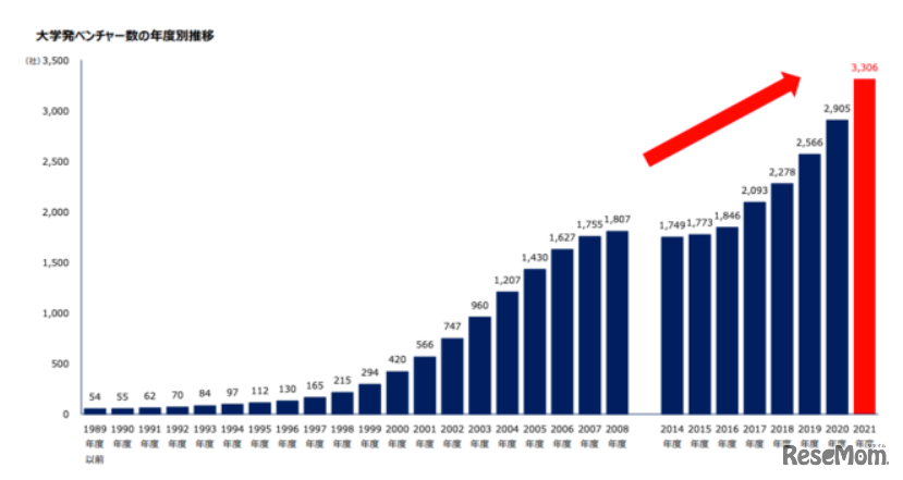 画像出典:ペンマーク 大学発ベンチャー数の年度別推移