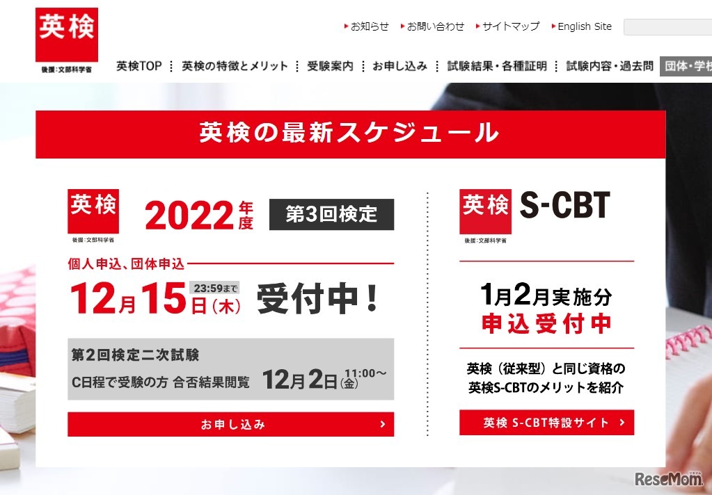 日本英語検定協会は2022年12月2日、Webサイトで「英検2022年度第2回二次試験」C日程の合否結果閲覧サービスを開始する。団体責任者向けは午前11時以降、個人(英ナビ!会員)向けは午後1時以降に公開予定。