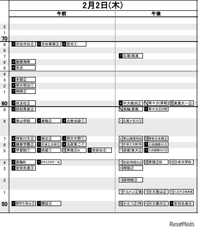 日能研は2022年12月5日、「2023年入試 予想R4一覧」の首都圏11月22日版、関西11月15日版、東海11月版を公表した。合格可能性80%ラインの偏差値は、開成(72)、筑波大駒場(72)、桜蔭(67)、女子学院(67)、灘(71)等。
