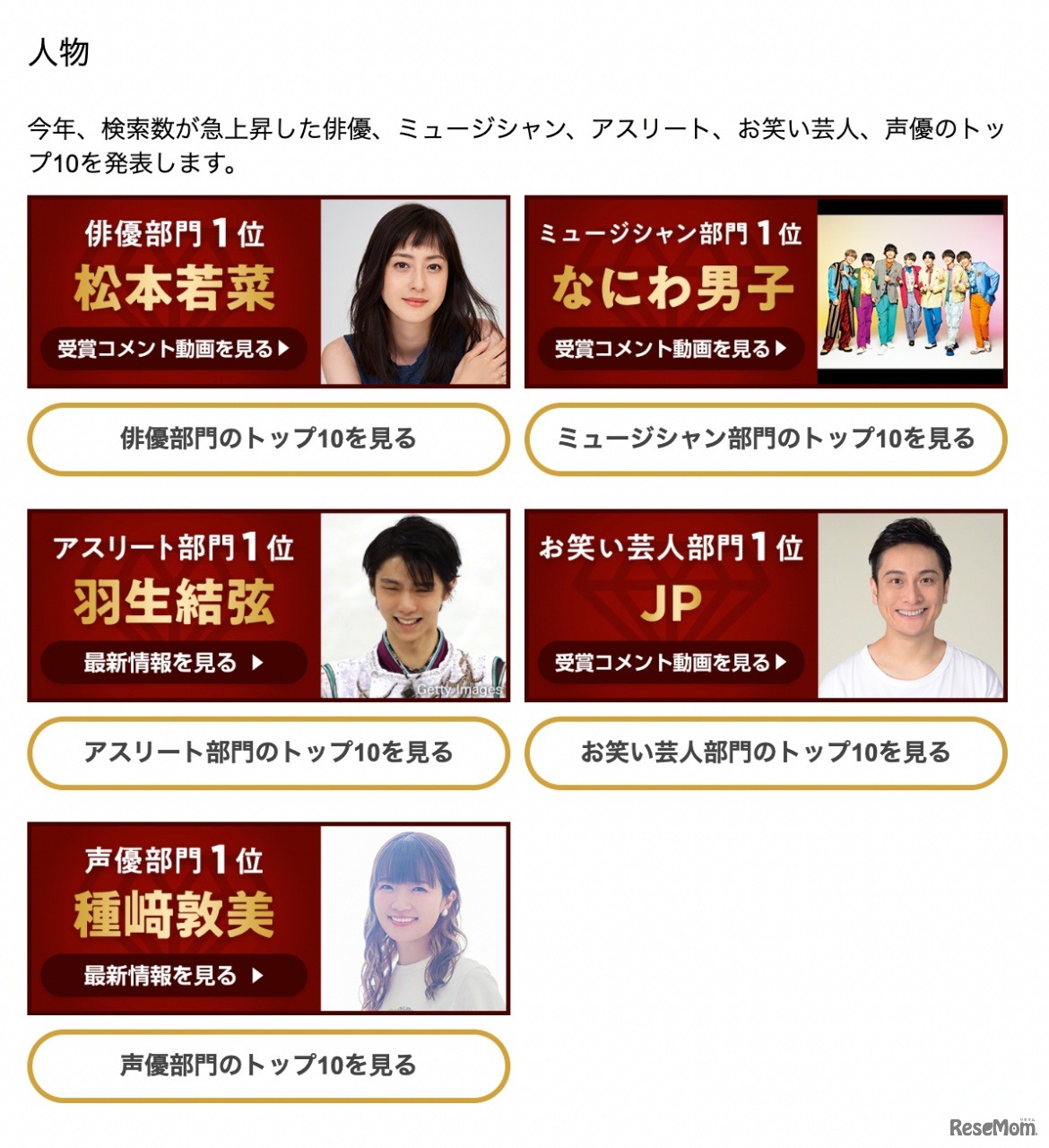 ヤフーは2022年12月5日、前年(2021年)と比べ検索数が急上昇した人物や作品、プロダクト等をランキング形式で発表する「Yahoo!検索大賞2022」を発表。今年の顔となる大賞およびアスリート部門1位に「羽生結弦」が選ばれ、ダブル受賞となった。