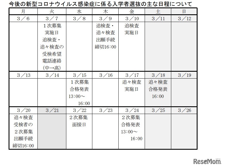 秋田県は2022年12月1日、2023年度公立高等学校入学者選抜に係る新型コロナウイルス感染症に対応したガイドラインを公表した。感染または感染の疑いにより、1次募集の学力検査等を欠席した志願者には「追検査」「追々検査」を実施する。