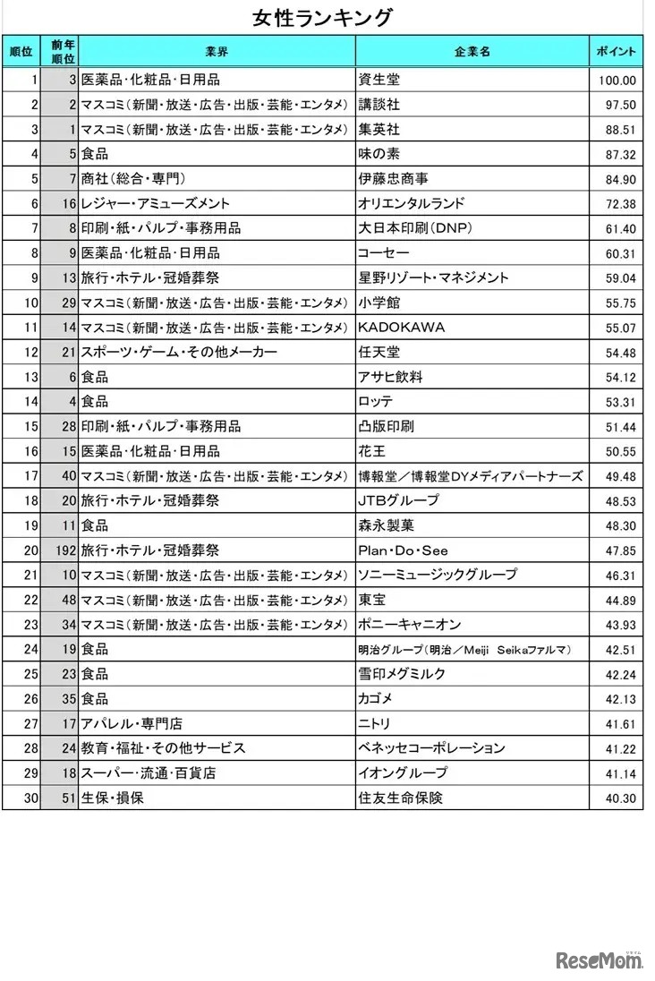 学情は2022年12月2日、2024年卒の学生対象「就職人気企業ランキング」を男女別に発表した。男性部門1位は、「伊藤忠商事」、2位「任天堂」、3位「アサヒ飲料」。女性部門1位は「資生堂」、2位「講談社」、3位「集英社」となった。