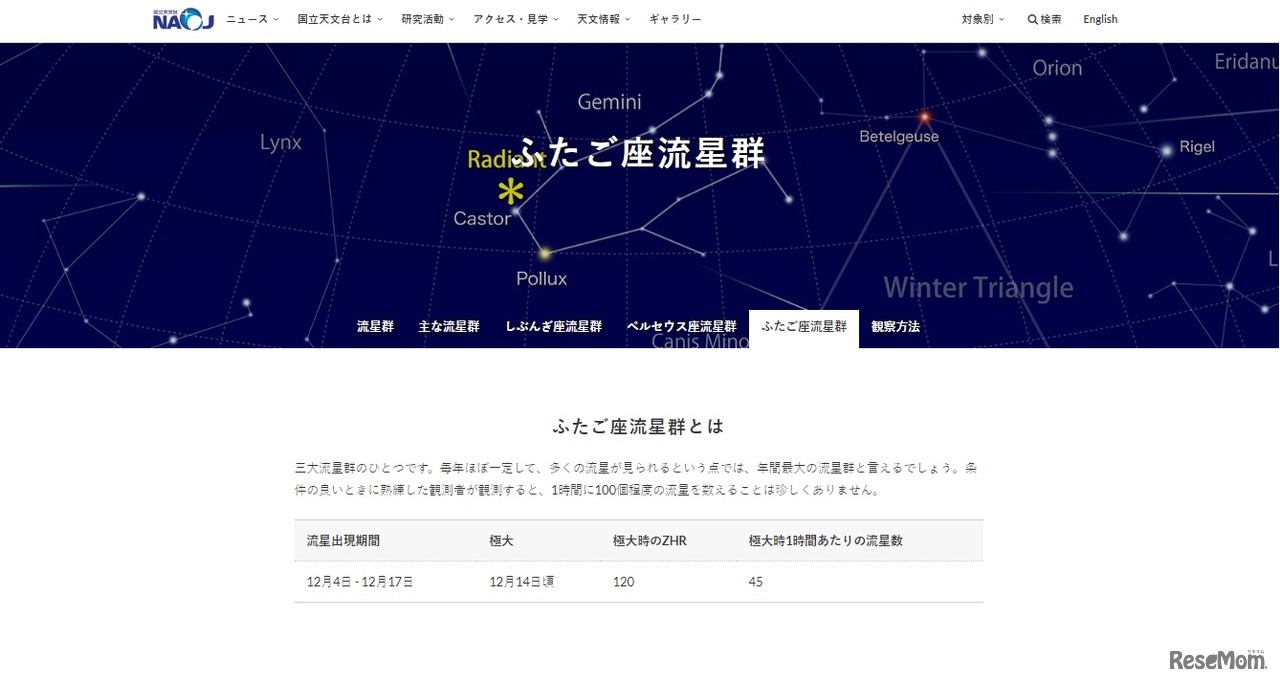 ふたご座流星群が、2022年12月14日に出現のピークを迎える。13日夜から14日明け方と、14日夜から15日明け方にかけ、月が高く昇る前が観測のチャンスとなる。好条件下では、1時間あたり40個~50個の流星が見られると予想される。