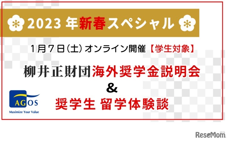 アゴス・ジャパンは2023年1月7日、留学に興味がある学生を対象に「柳井正財団海外奨学金説明会&奨学生 留学体験談」を開催する。参加無料。アゴスWebサイトより事前予約制。
