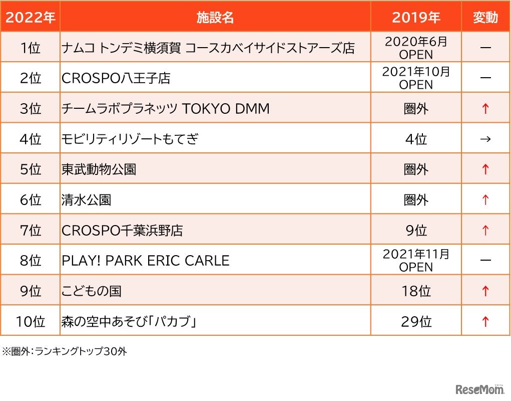 子供とお出かけ情報サイト「いこーよ」を企画・運営するアクトインディは2022年12月5日、2022年の人気スポット年間ランキングを発表した。関東1位は「ナムコ トンデミ横須賀 コースカベイサイドストアーズ店」、関西1位は「キッズプラザ大阪」。