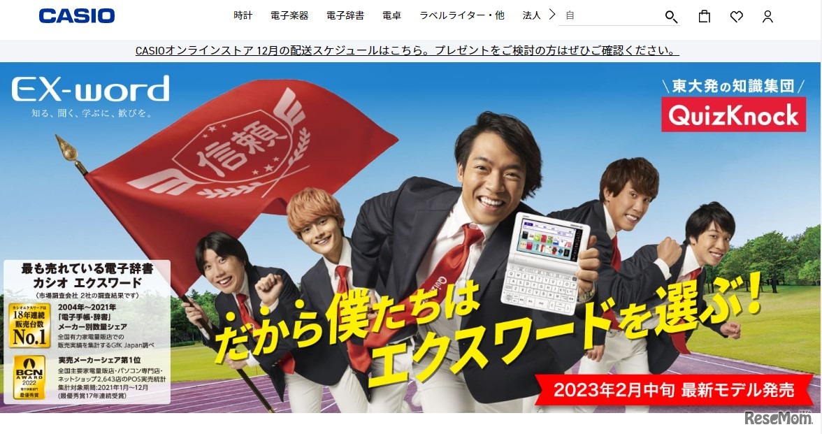 カシオ計算機は2022年12月14日、POS実売統計で年間販売台数1位の電子辞書「EX-word(エクスワード)」の新製品として、8年ぶりの改訂新版となる「ジーニアス英和辞典」を収録した7機種を、2月中旬より順次販売すると発表した。