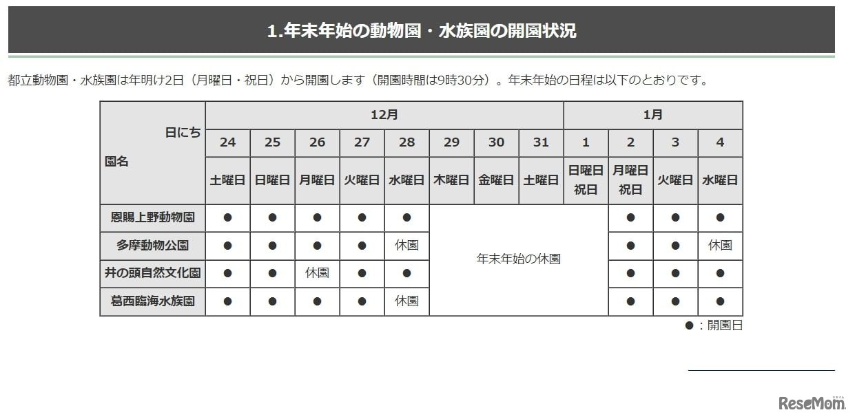 画像出典:東京都 末年始の動物園・水族園の開園状況