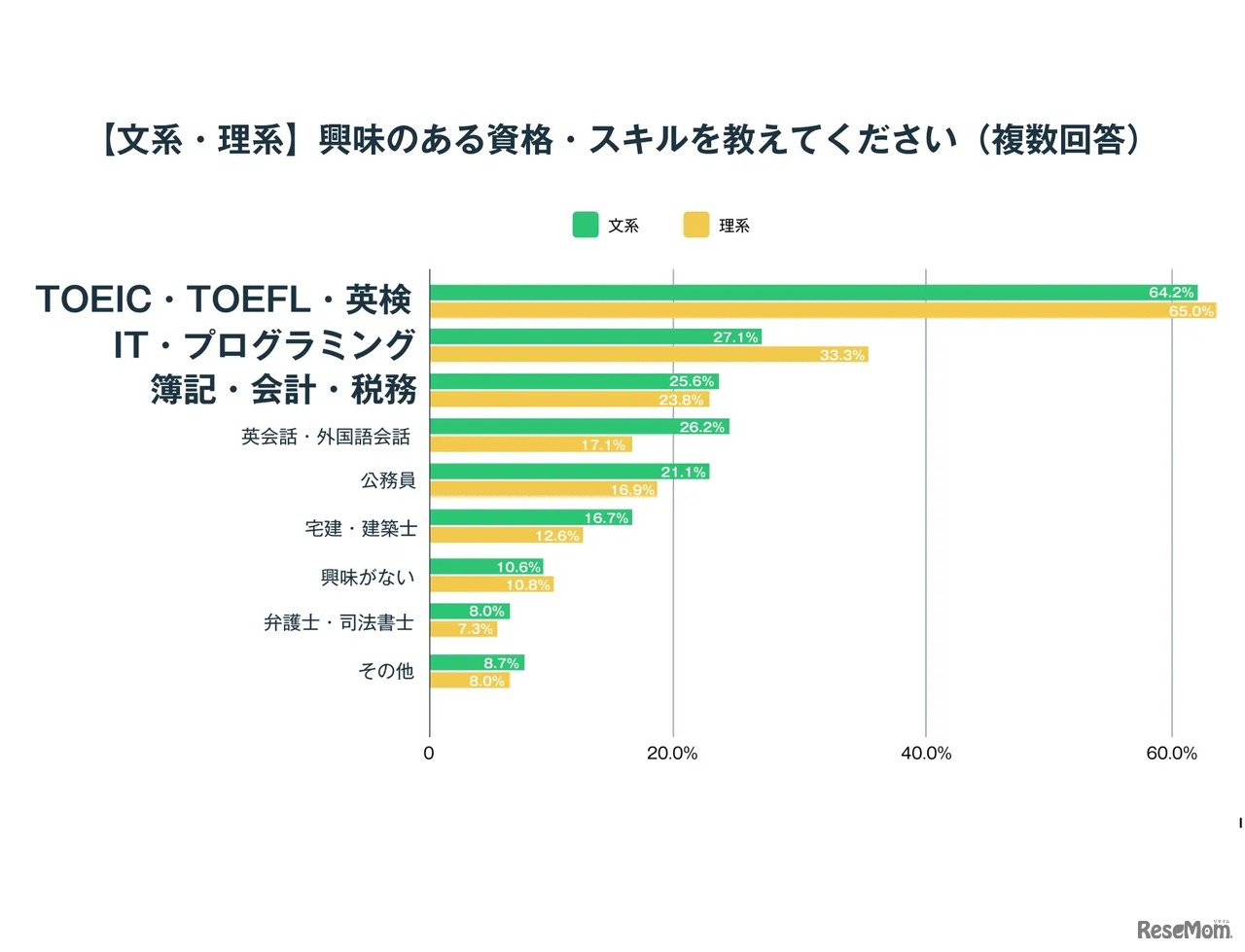 「文系・理系」興味のある資格・スキル