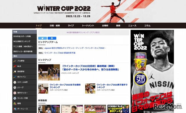 スポーツナビは、2022年12月23日より開催される2022年度(令和4年度)第75回 全国高等学校バスケットボール選手権大会「SoftBank ウインターカップ2022」特集をリリースした。男女全118試合の無料ライブ配信を行う。