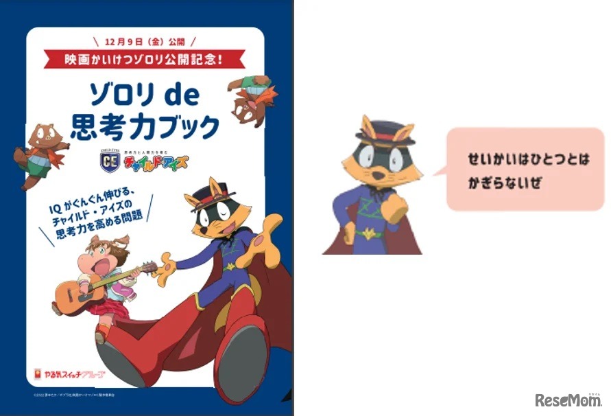 やる気スイッチグループが展開する知育と受験対策の幼児教室「チャイルド・アイズ」では、「映画かいけつゾロリ ラララ♪スターたんじょう」の公開を記念して、スペシャルコラボレーションしたオリジナル問題集「ゾロリde思考力ブック」の無料ダウンロードを開始した。