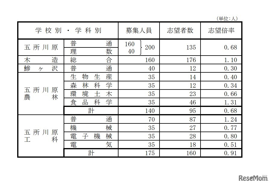 青森県教育委員会は2022年12月1日、県内中学校等卒業予定者の進路志望状況(第1次調査)の結果をまとめた報告書を公表した。学校・学科別の進学志望倍率は、青森南(普通)1.69倍がもっとも高かった。その他、青森(普通)1.25倍、弘前(普通)1.34倍等となった。