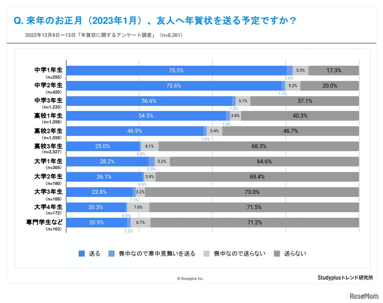 画像出典:Studyplusトレンド研究所 来年のお正月(2023年1月)、友人へ年賀状を送る予定ですか?