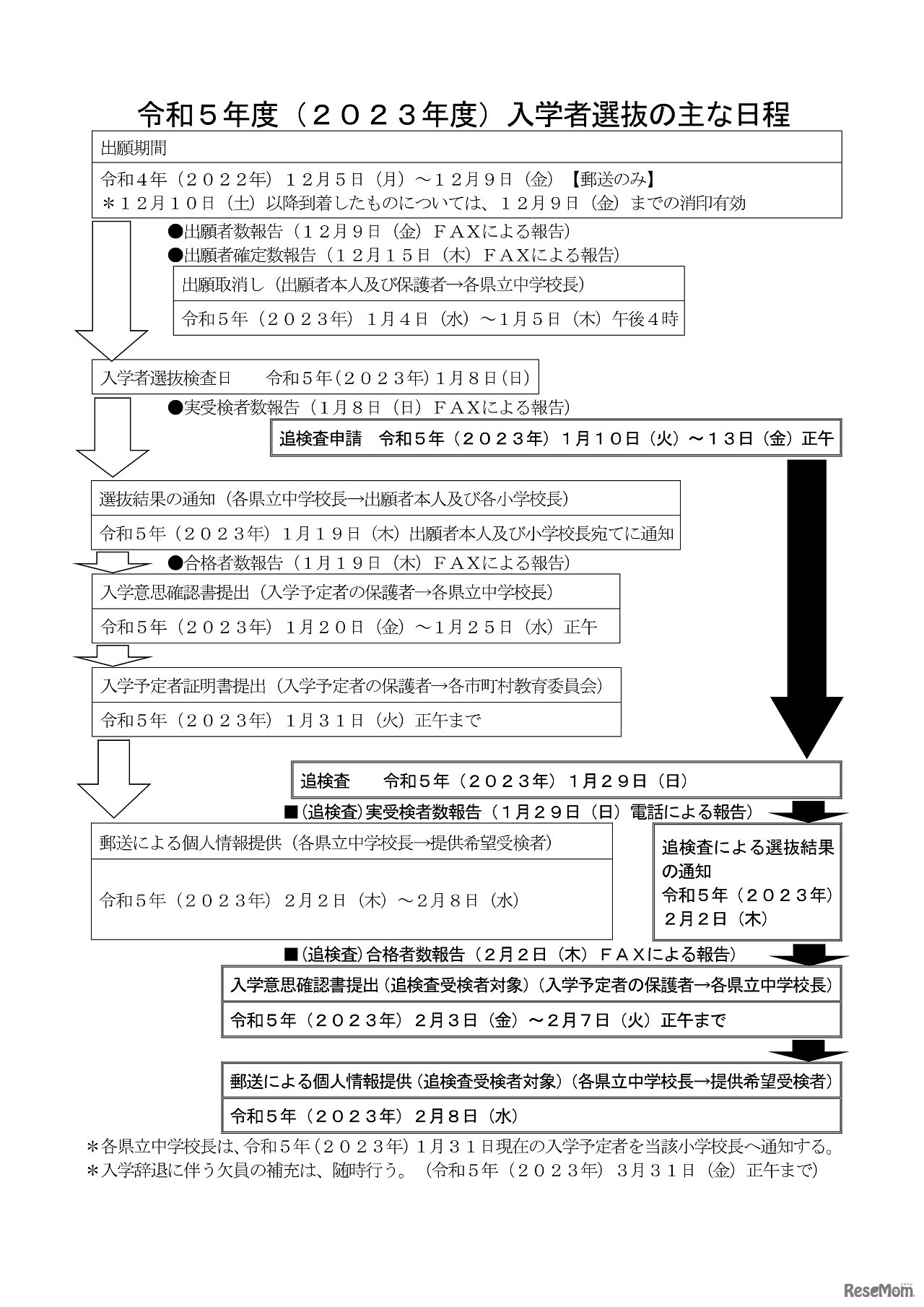 画像出典:熊本県教育委員会 2023年度入学者選抜のおもな日程