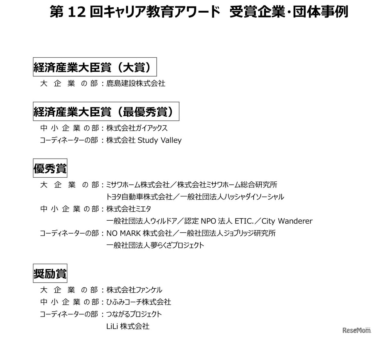 経済産業省は2022年12月16日、第12回キャリア教育アワードと第11回キャリア教育推進連携表彰の受賞団体を発表した。キャリア教育アワードの大賞は、鹿島建設。キャリア教育の先進事例として、大津市立葛川小・中学校「KCLプロジェクト」が表彰された。