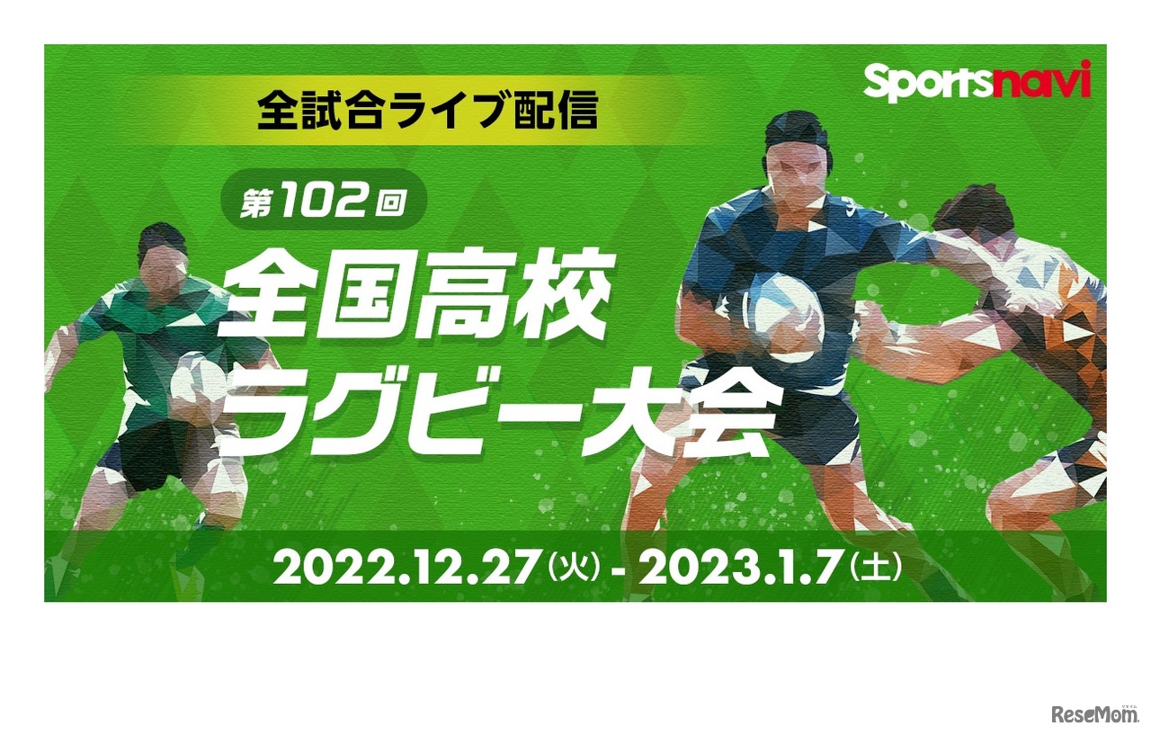 スポーツナビは2022年12月27日~2023年1月7日、大阪府の東大阪市花園ラグビー場、花園中央公園多目的球技広場で開催される「第102回全国高等学校ラグビーフットボール大会」の全試合を無料でライブ配信する。