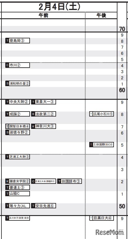 画像出典:日能研 予想R4偏差値2022年12月15日版女子2月4日