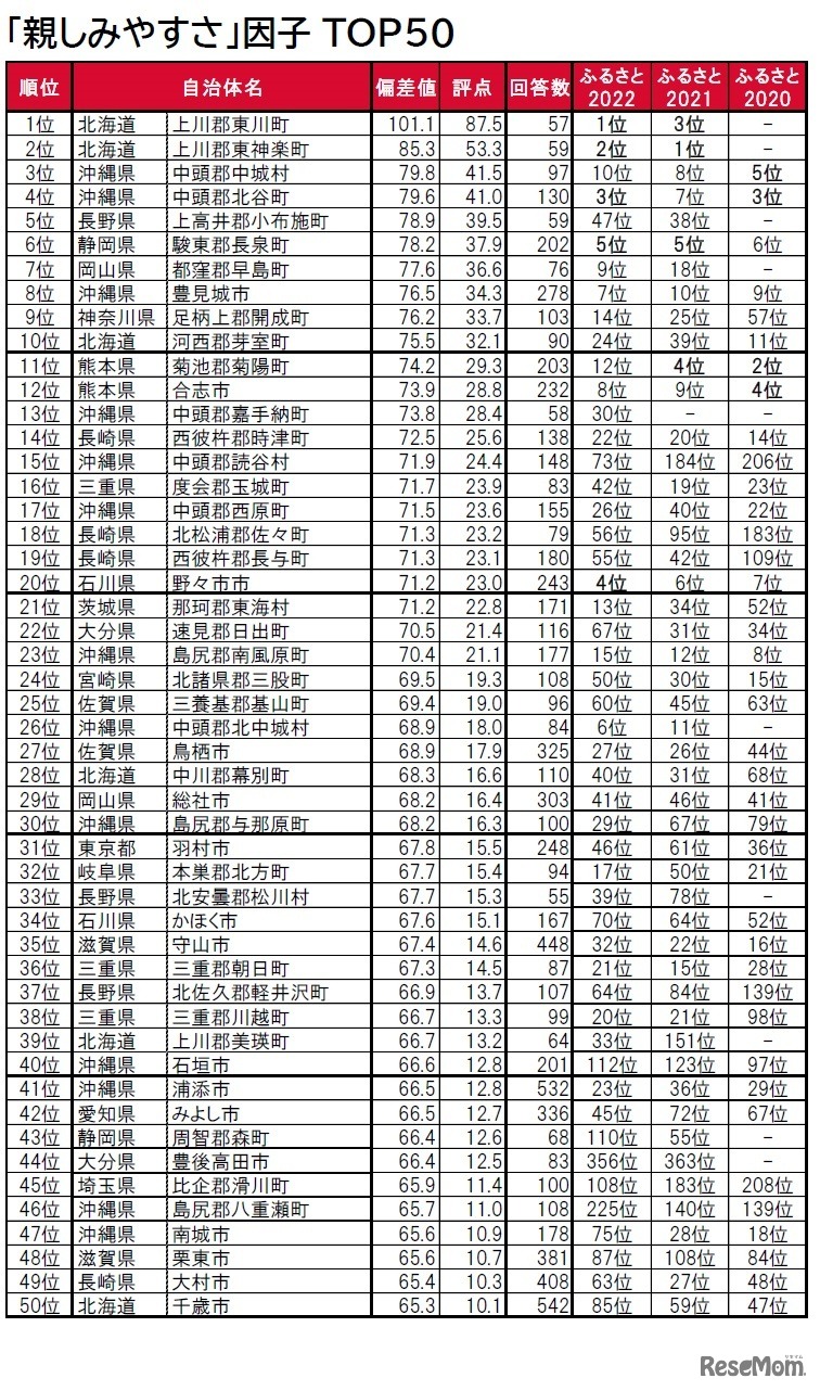 画像出典:大東建託 「親しみやすさ」因子ランキングTOP50