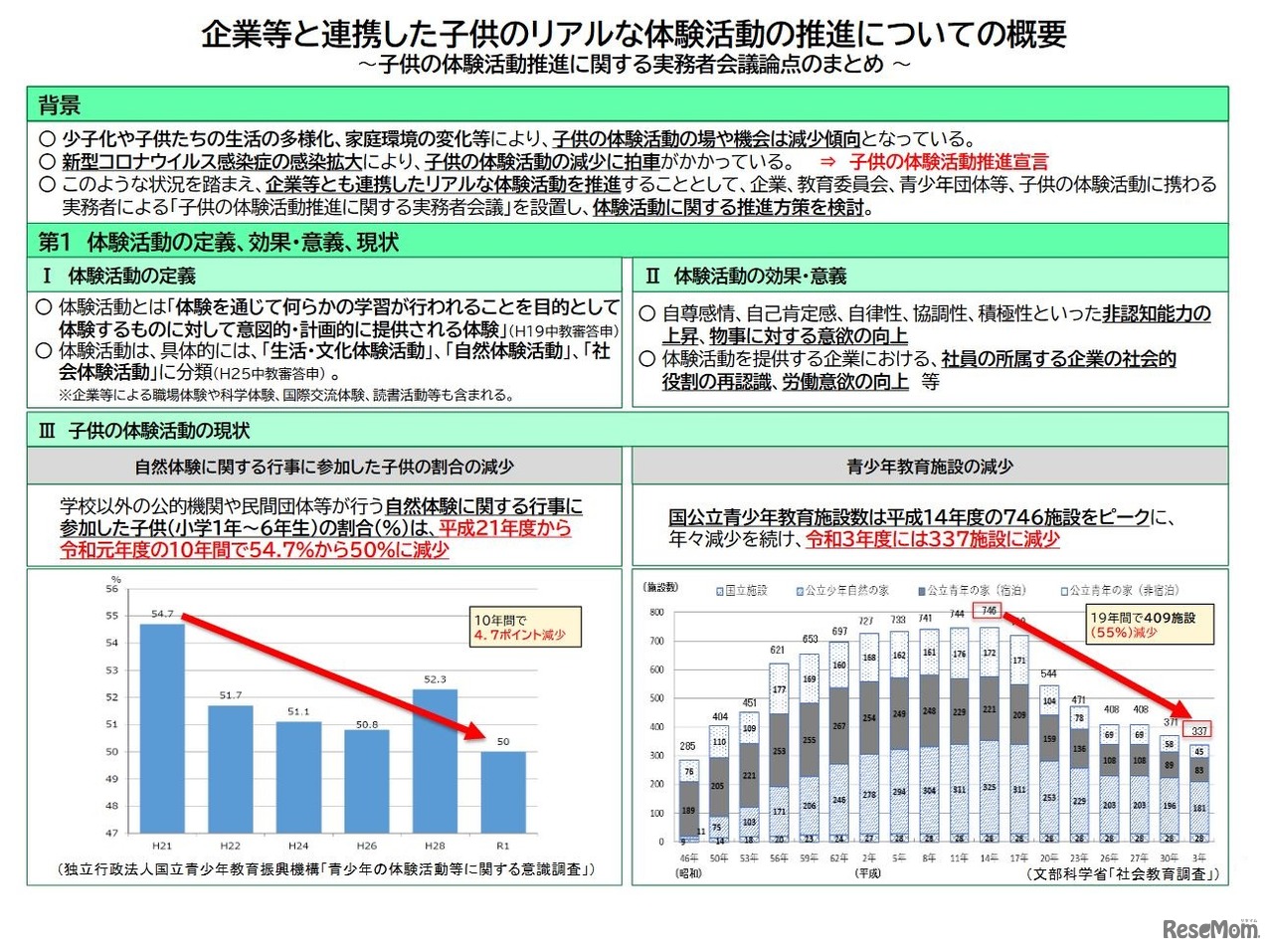 文部科学省は2022年12月27日、企業等と連携した子供のリアルな体験活動の推進について論点まとめを公表した。学校や教育委員会、企業、青少年教育団体等の関係者と連携して、子供の体験活動推進に取り組むにあたっての課題や方策を示している。
