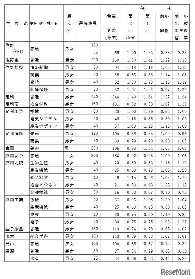 【高校受験2023】栃木県進路希望調査(12/1時点)宇都宮中央1.89倍 4枚目の写真・画像