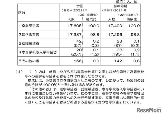 2022年度中学校等生徒の進路希望調査結果