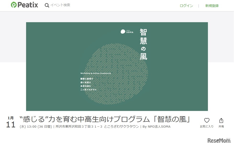 NPO法人SOMAは角川文化振興財団の協力のもと、2023年1月11日から2月15日まで、ところざわサクラタウン内の角川武蔵野ミュージアム(埼玉県所沢市)にて中高生向けエディトリアルスクール「智慧の風」を開校する。参加費1万5,000円(税込)。定員30名(予定)。