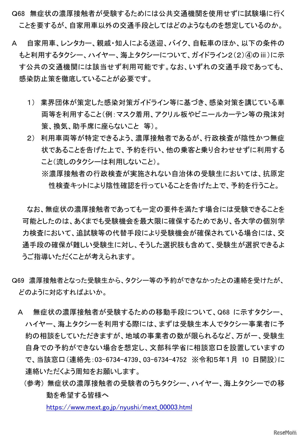 【大学受験2023】濃厚接触者はタクシー予約可…文科省に相談窓口を開設 2枚目の写真・画像