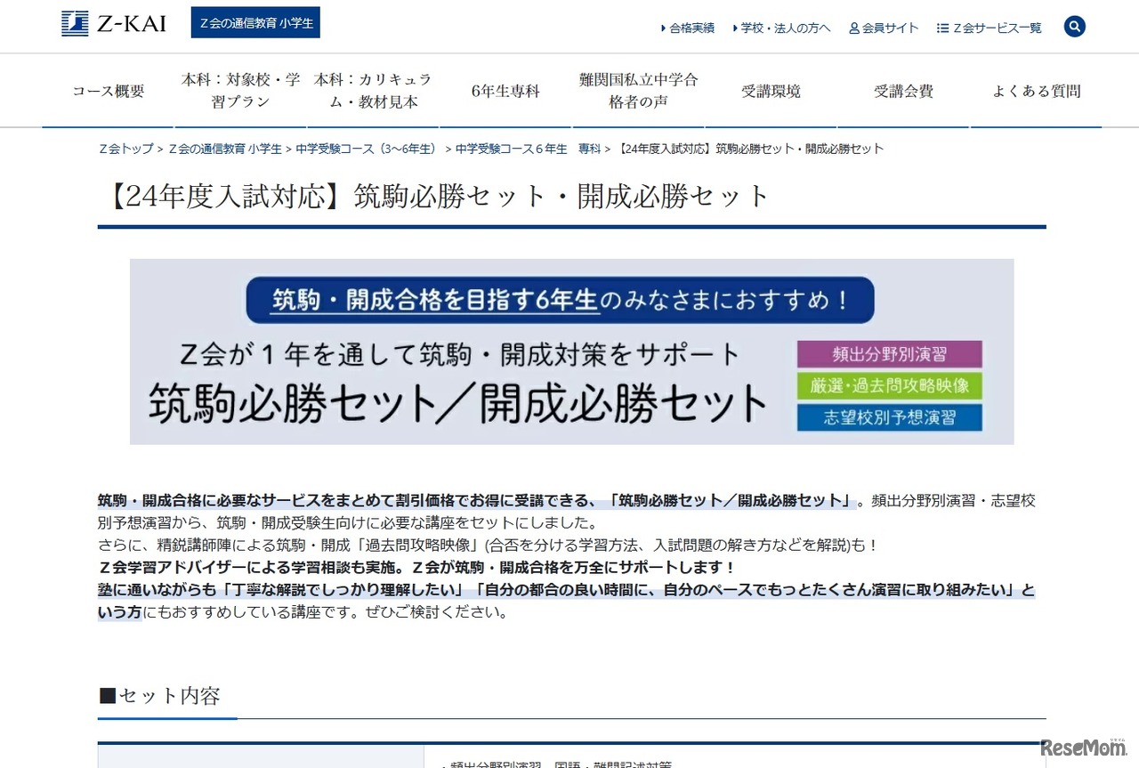 Z会の通信教育は、2024年度入試に対応した筑駒・開成合格に必要なサービスをまとめて受講できる「筑駒必勝セット/開成必勝セット」の申込受付を開始した。