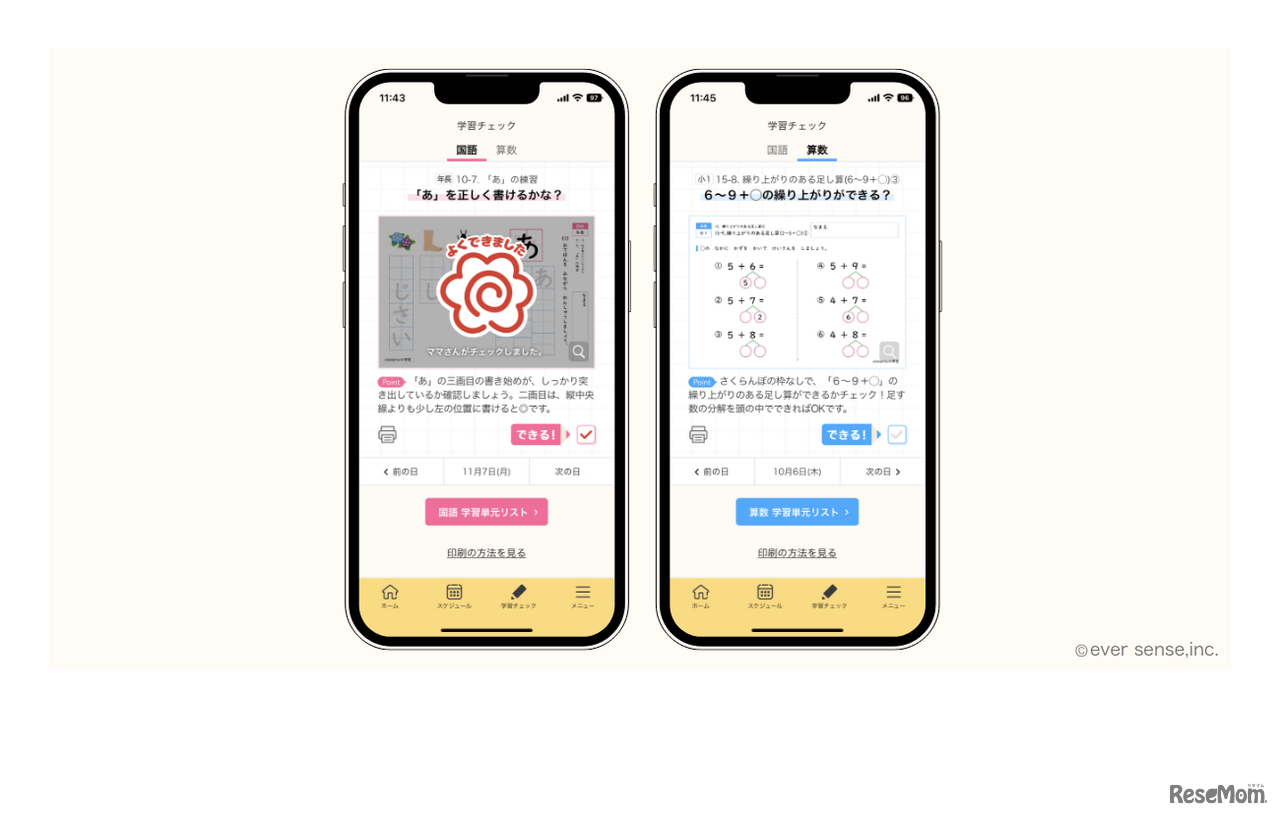 画像出典:エバーセンス 毎日5分で国語と算数の理解度を把握できる「学習チェック機能」