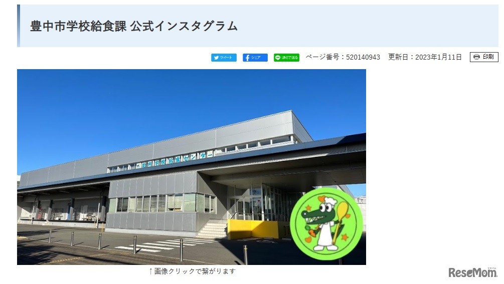 豊中市教育委員会と学校給食課、SNSで情報発信 2枚目の写真・画像