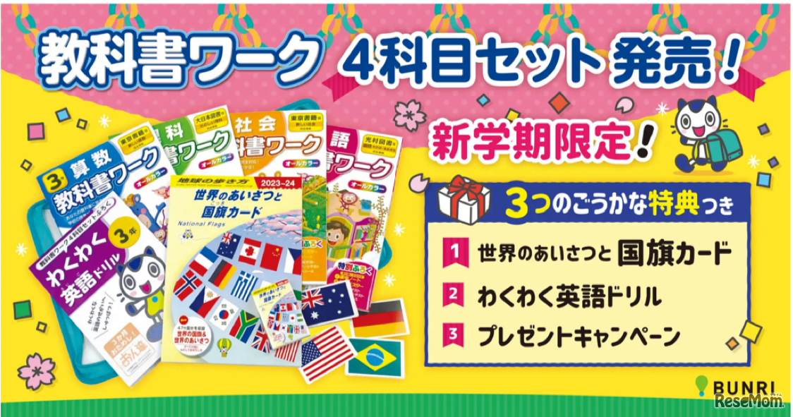 学研ホールディングスのグループ会社であり、小中学生向け学習参考書の出版社である文理は、2023年1月より「小学教科書ワーク4科目セット」の販売を開始した。価格は5,456円(税込)。