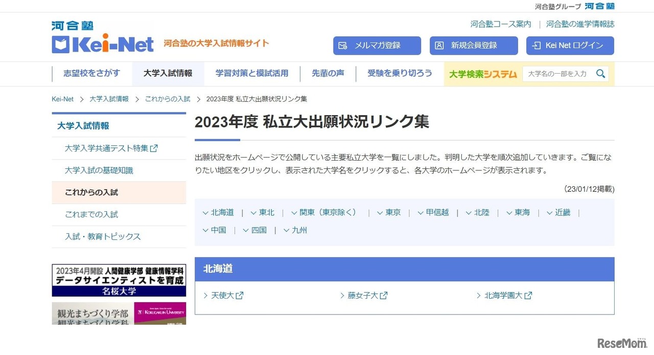 【大学受験2023】Kei-Net「私立大出願状況リンク集」公開 1枚目の写真・画像