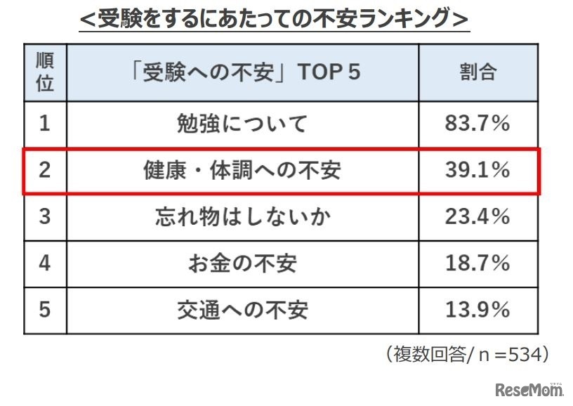 画像出典:リクルート 受験するにあたっての不安ランキング