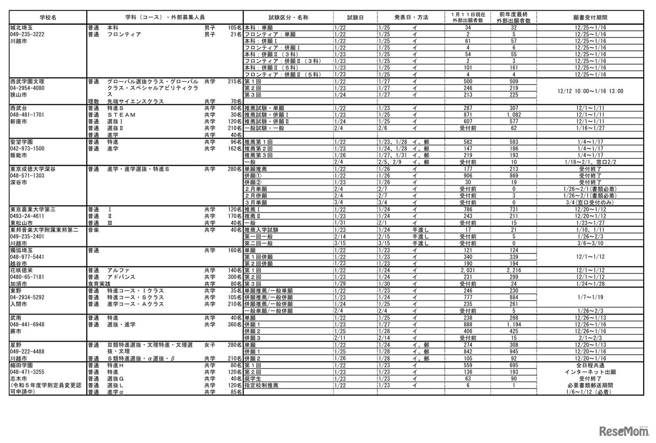 【高校受験2023】埼玉県私立高の応募状況(1/11時点)慶應義塾志木・併願は1,078人出願 4枚目の写真・画像