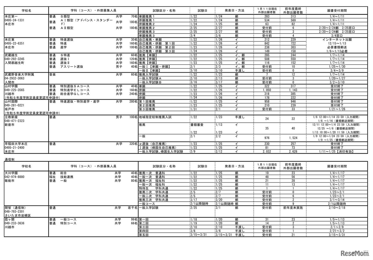 【高校受験2023】埼玉県私立高の応募状況(1/11時点)慶應義塾志木・併願は1,078人出願 5枚目の写真・画像