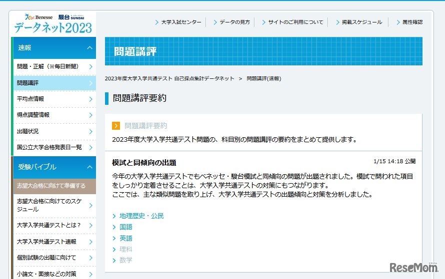 2023年度大学入学共通テスト(旧センター試験、以下、共通テスト)の本試験が、2023年1月15日に終了した。問題や解答速報が公表される中、河合塾やデータネット(ベネッセ・駿台)では、模試や教材から的中した問題、類似問題を取り上げ、Webサイトで紹介している。