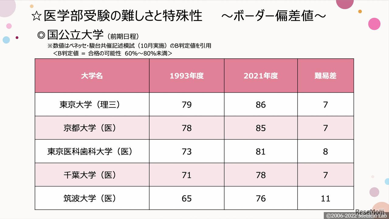 提供:メディカルラボ 30年前と現在のボーダー偏差値比較