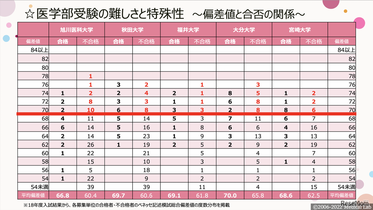 提供:メディカルラボ 受験生の偏差値と合否の関係