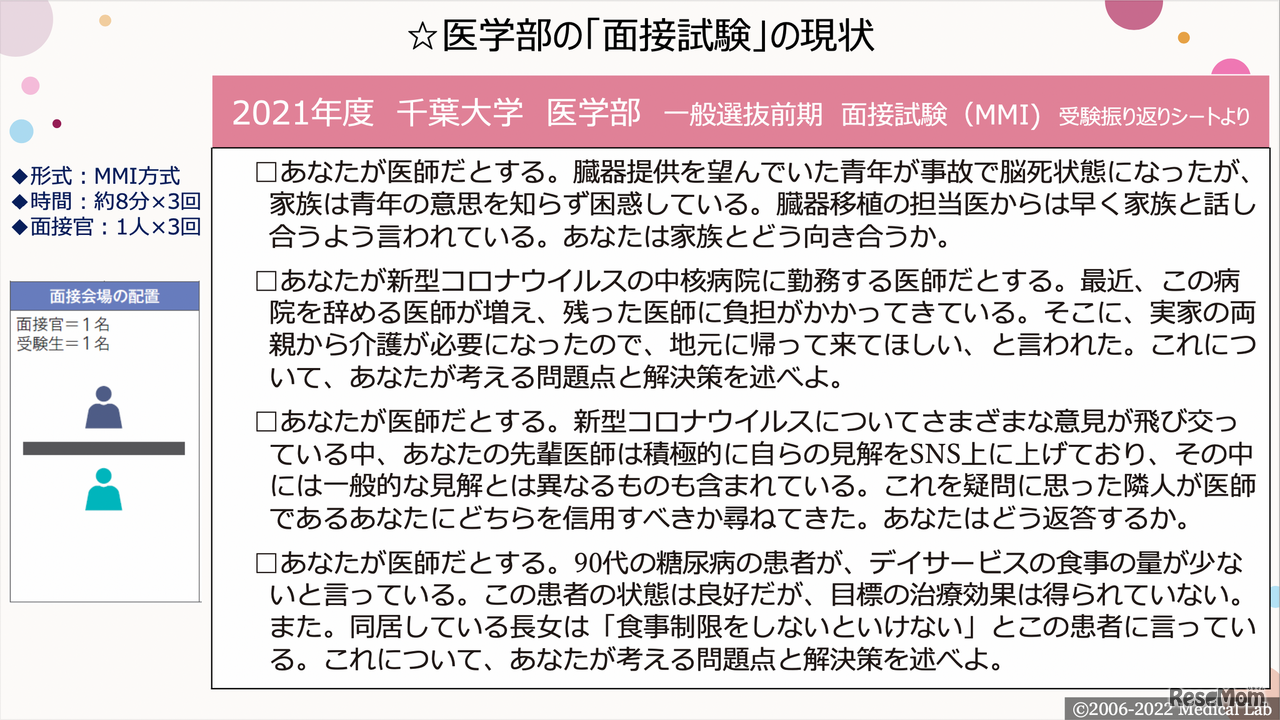 提供:メディカルラボ 医学部の「面接試験」の現状(千葉大学の例)