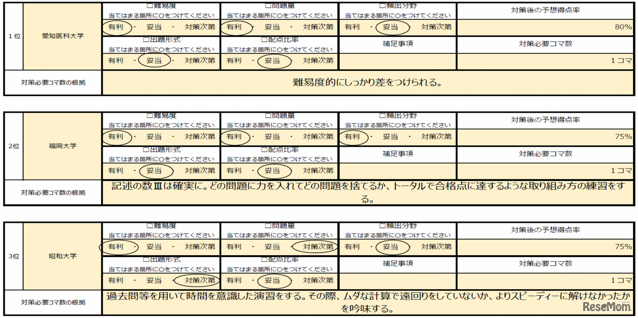提供:メディカルラボ メディカルラボで実施している受験校決定のためのマッチング
