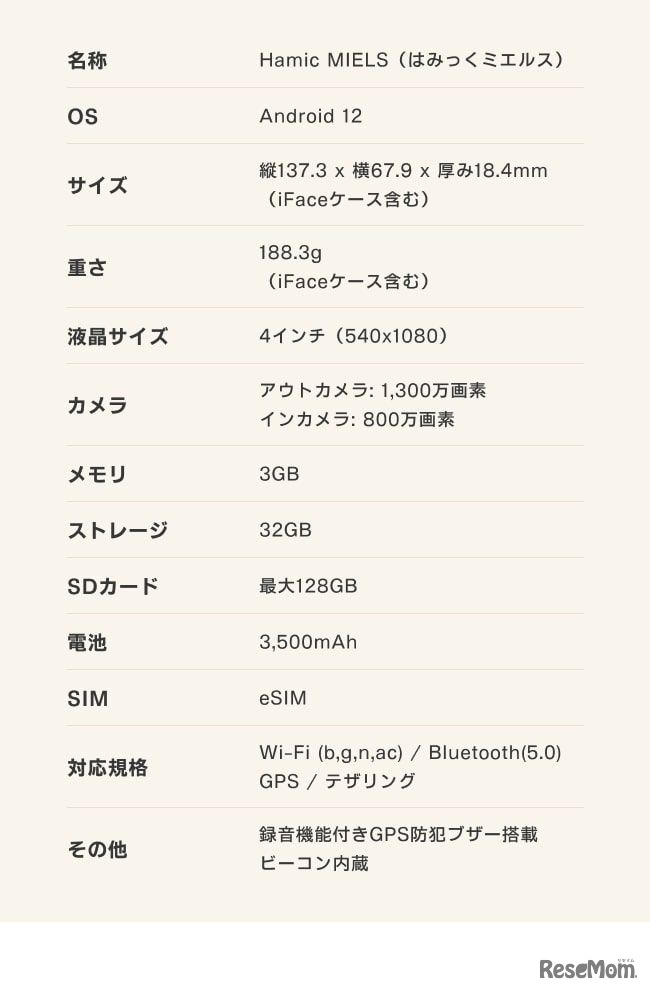 キッズスマホ「Hamic MIELS」電池切れても検知可能 5枚目の写真・画像