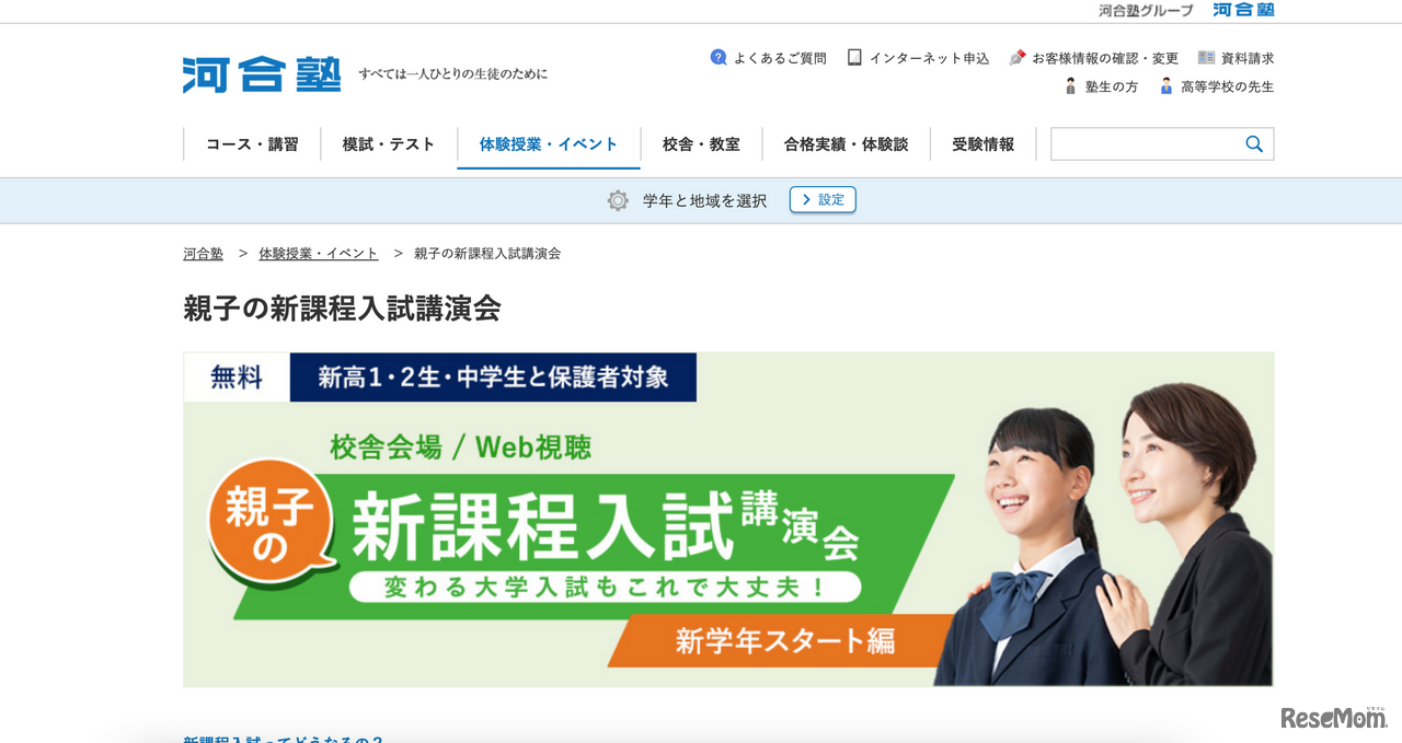 河合塾は、新高校1・2生(現中3・高1生)・中学生および保護者を対象に「親子の新課程入試講演会~変わる大学入試もこれで大丈夫!~」を河合塾校舎とWeb視聴の2つの形式で開催する。会場は2023年2月12日から、Web視聴は3月10日から。参加費無料。