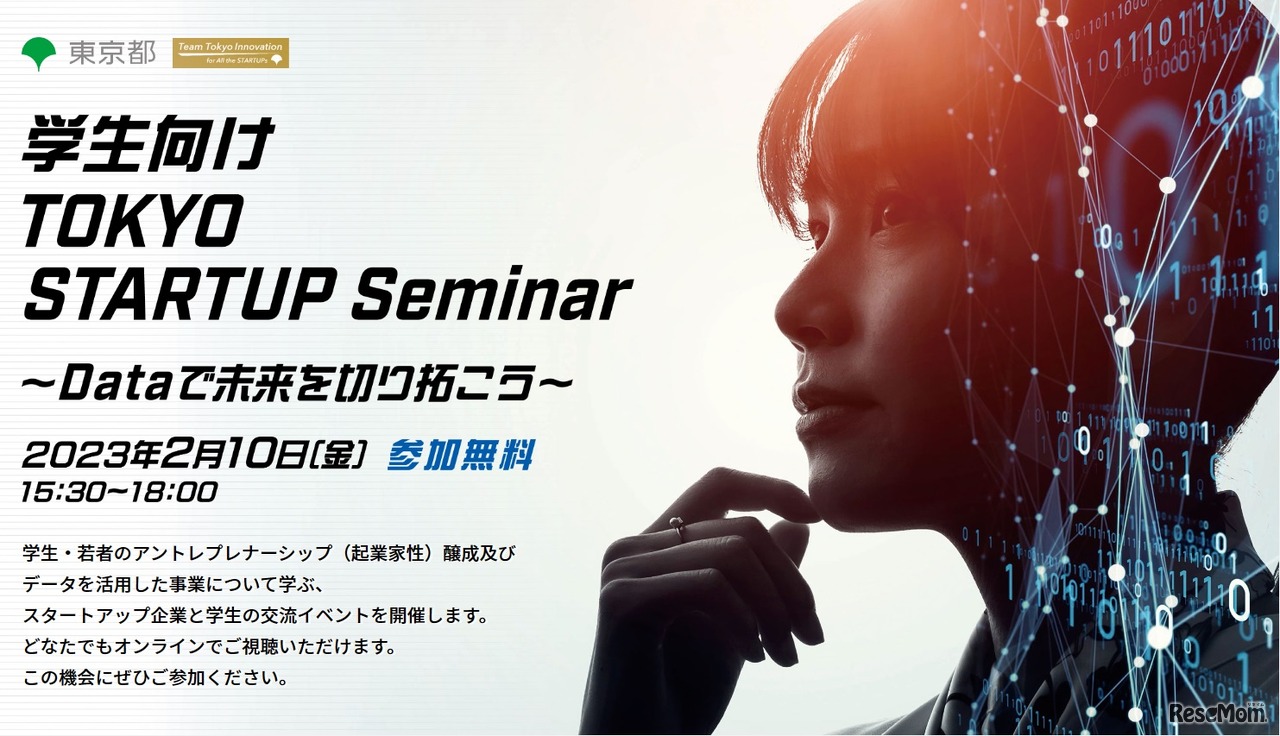 東京都は2023年2月10日、「学生向けTOKYO STARTUP Seminar~Dataで未来を切り拓こう~」をオンラインにて開催する。学生の他、起業やスタートアップ、データを活用したサービスに興味のある人も対象で、参加は無料。