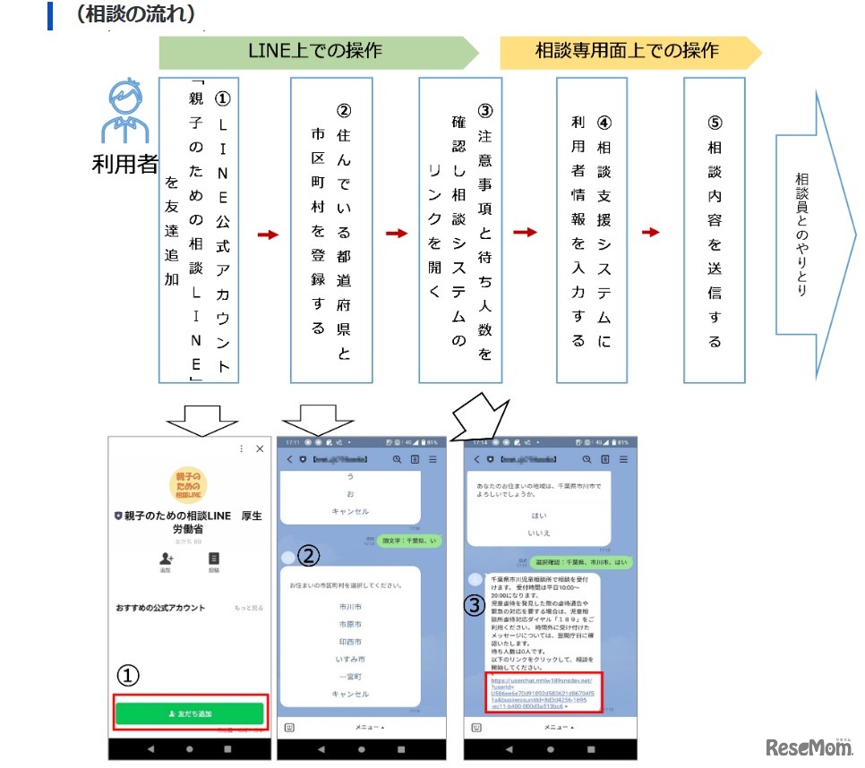 厚生労働省は2023年2月より、「親子のための相談LINE」を順次運行を開始する。子育てや親子関係について悩んだときに相談できる窓口で、試行的に実施している自治体にはすでに相談することが可能となっている。
