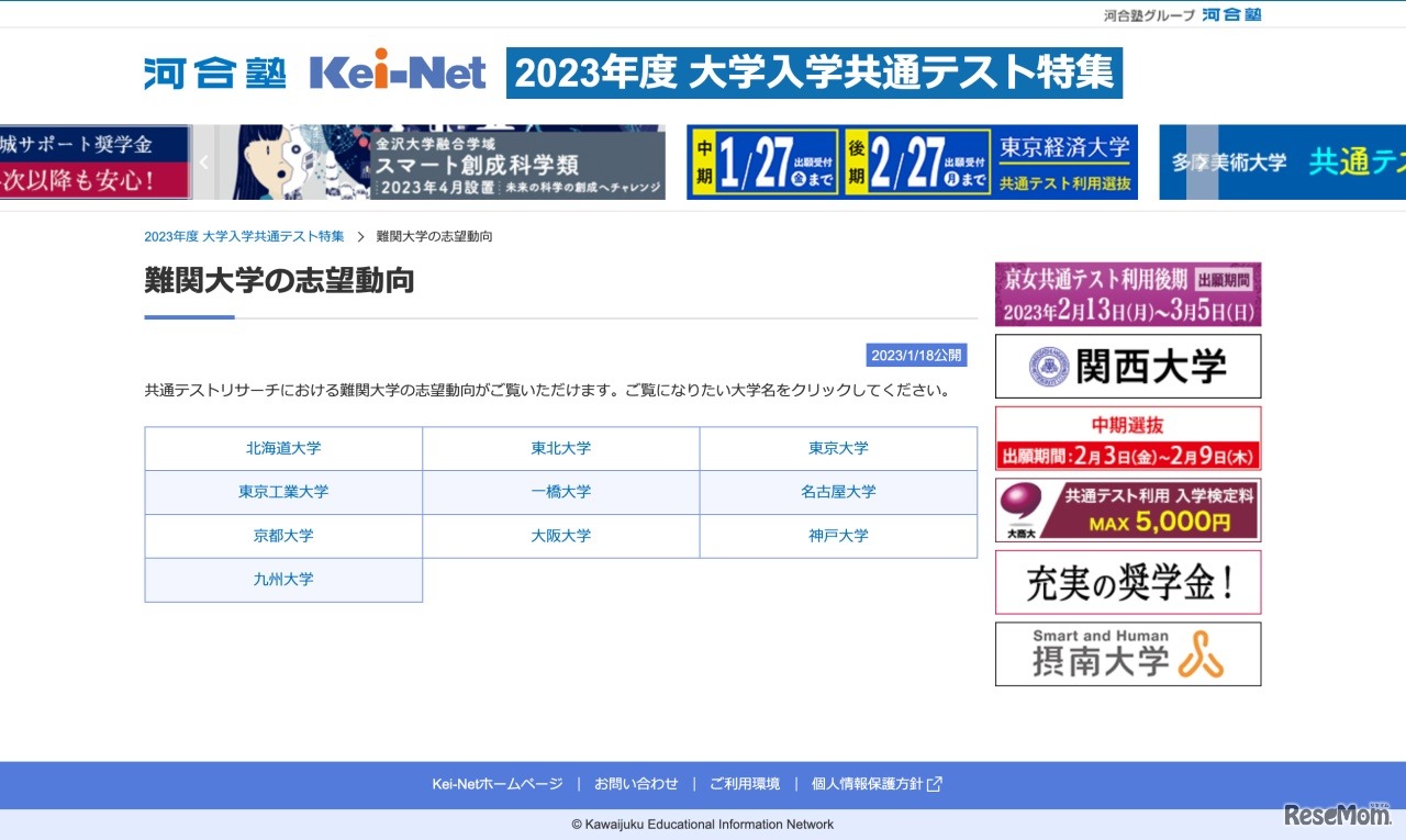 河合塾は2023年1月18日、2023年度(令和5年度)大学入学共通テスト(以下、共通テスト)における「難関大学の志望動向」を公開した。東京大学や京都大学等の難関国立10大学について、志望動向や予想ボーダー得点等を分析している。