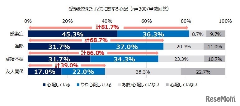 ムンディファーマは、「受験を控えた子供を持つ全国30歳以上の親」を対象に実施した「受験シーズンの感染症対策に関する調査」の結果を公開した。受験を控えた子供に関する心配事は「進路」や「成績不振」よりも「感染症」が高い結果となった。