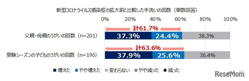 新型コロナウイルス感染症の拡大前と比較したうがいの回数