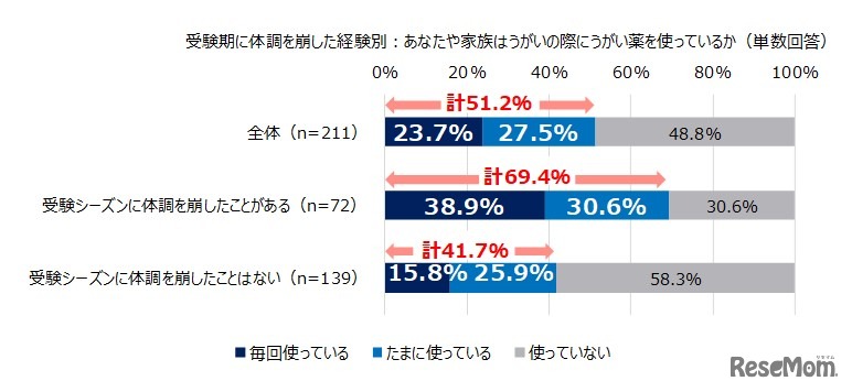 受験期に体調を崩した経験別:うがいの際にうがい薬を使っているか