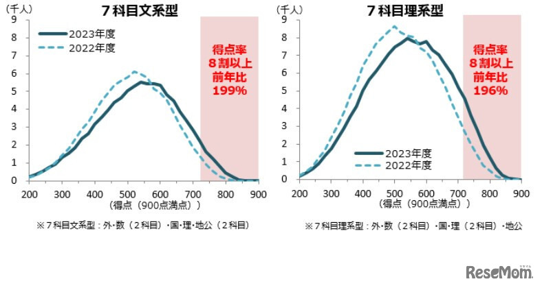 画像出典:河合塾 「共通テストリサーチ」7科目受験者の成績分布