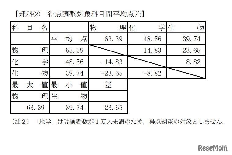 画像出典:大学入試センター 理科2 得点調整対象科目間平均点差