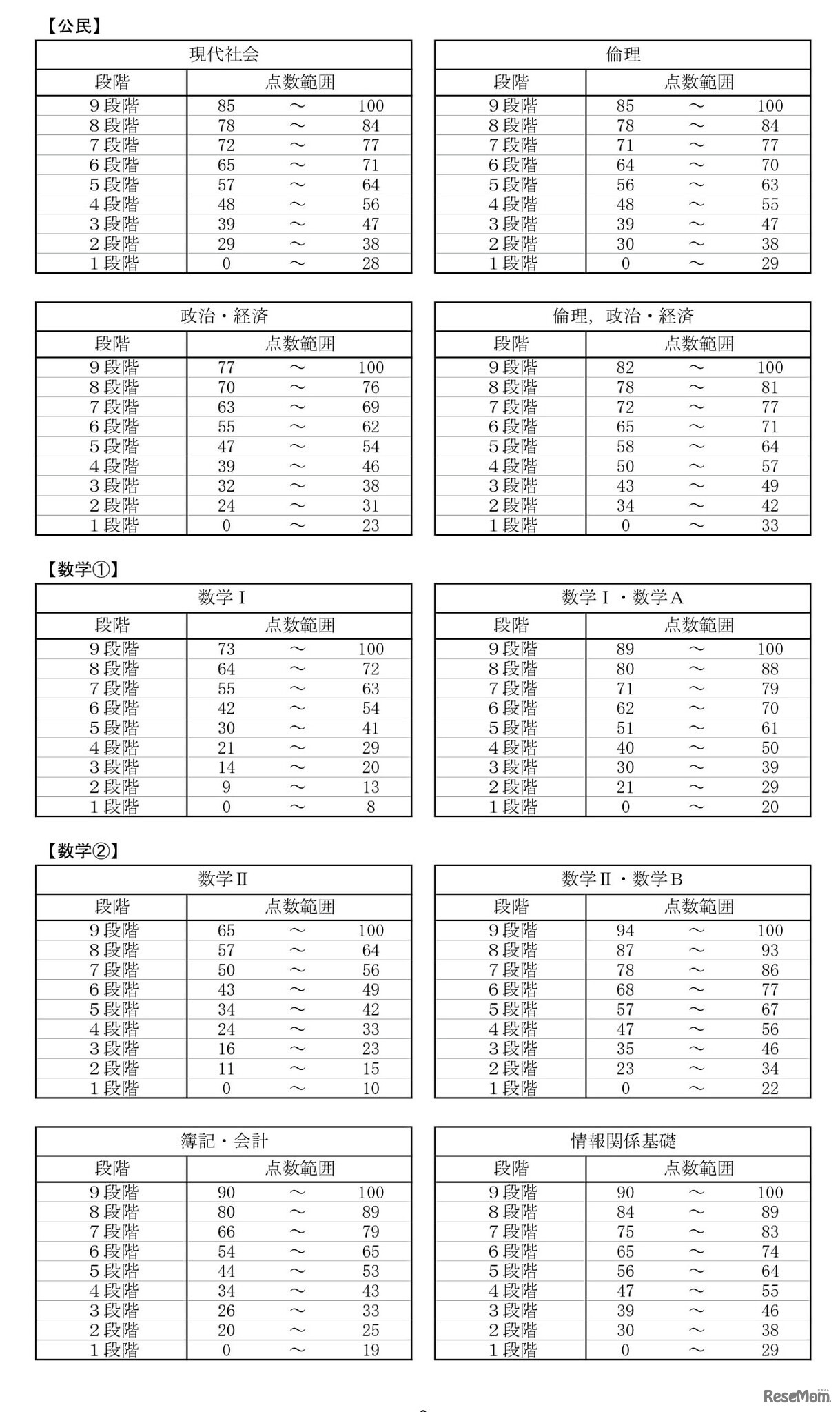 2023年度(令和5年度)大学入学共通テスト「段階表示換算表」